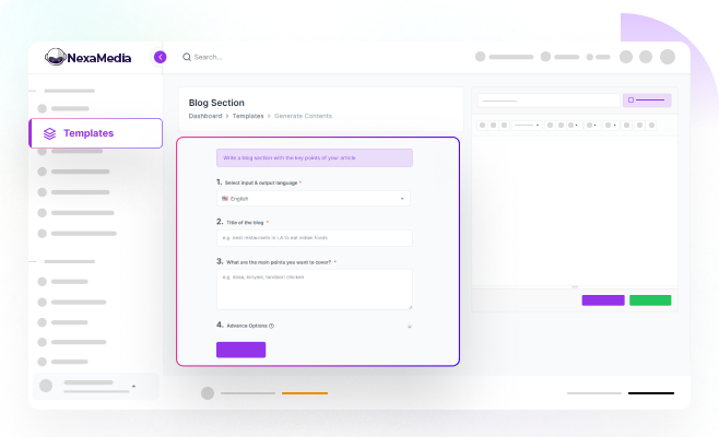 - Écrivez ou sélectionnez des invites prédéfinies NexaMedia